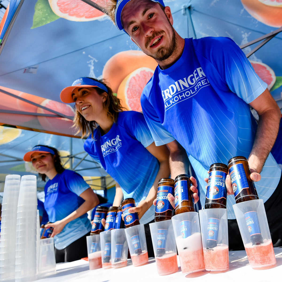 Diese haben übrigens genauso wenige Kalorien wie der Klassiker <link https: www.facebook.com erdinger.alkoholfreide _blank external-link-new-window internen link im aktuellen>ERDINGER Alkoholfrei. Gebt alles für euer Finish und freut euch auf die verdiente Belohnung nach dem Rennen. Wo deine bevorzugte Geschmacksrichtung auf dich wartet, verraten dir weithin sichtbar die groß aufgedruckten Früchte auf den Ausschankzelten.